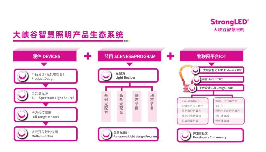 2020年底,大峡谷智慧照明正式创立。其非但未受到突发新冠疫情的影响,还在短短半年时间内,以迅雷之势在“智慧与健康”这一新赛道上,搭建起以“硬件+内容+IOT平台”为三大支点的产品ECO,推出具有底层数据逻辑的理念体系、技术产品矩阵和商业模式,助推非视觉照明的发展和创新应用。